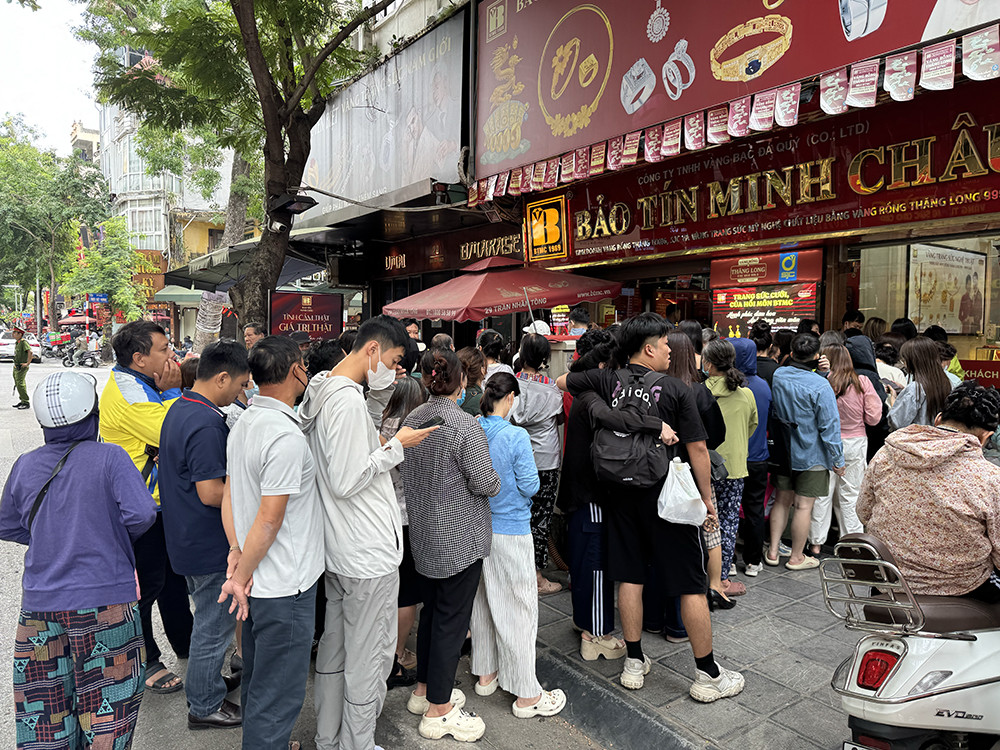 Tại Bảo Tín Mạnh Hải (phố Trần Duy Hưng), khách hàng được mua tối đa 10 lượng vàng vào đầu buổi sáng. Đây là điều rất hiếm gặp trong suốt đợt tăng giá vàng vừa qua. Do nhu cầu của khách hàng tăng cao, đến cuối buổi sáng, cửa hàng vàng này giới hạn chỉ còn 1 lượng mỗi khách hàng. Bảo Tín Mạnh Hải niêm yết giá vàng nhẫn bán ra là 154 triệu đồng/lượng.