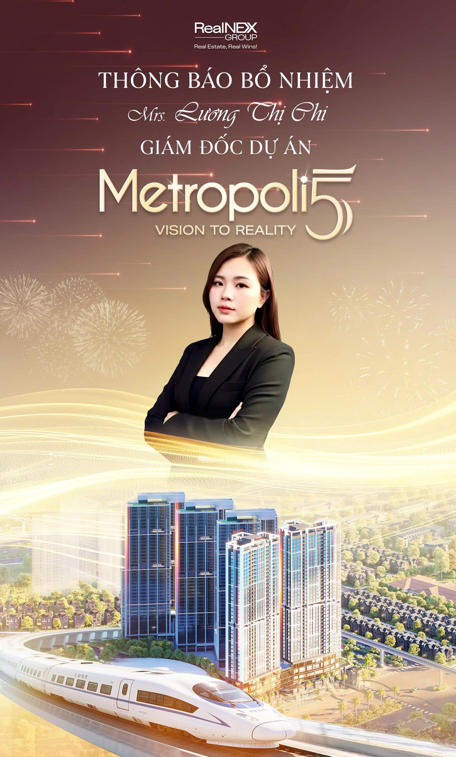 Quyết định bổ nhiệm Ms. Lương Thị Chi trở thành Giám đốc Dự án Metropoli5 đánh dấu bước khởi động quan trọng của RealNEX Group trong năm 2026, đồng thời khẳng định quyết tâm của Tập đoàn trong việc dẫn đầu thị trường bằng chiến lược rõ ràng, đội ngũ tinh nhuệ và các dự án có giá trị thực.